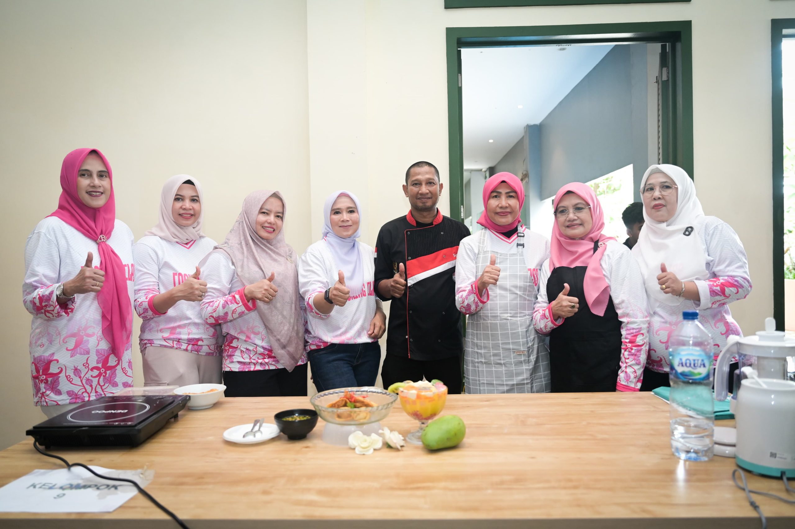 BALIKPAPAN, TIMESTIMUR – Ketua Dharma Wanita Persatuan (DWP) Kota Makassar, Fadliah Firman, menunjukkan kekompakannya dalam acara Cooking Class yang diadakan di Kampung Pasir Pantai Kemala, Balikpapan, pada Selasa (4/5/2024).