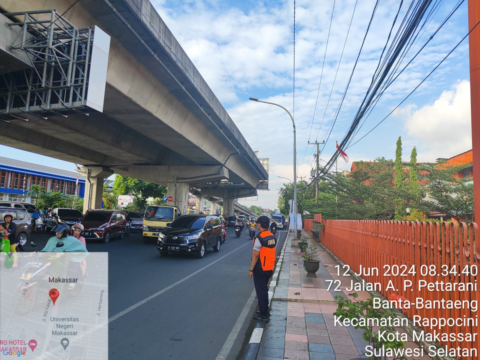 MAKASSAR, TIMESTIMUR — Dinas Perhubungan (Dishub) Kota Makassar melakukan pengamaan arus lalu lintas di ,Jl. Andi Pangeran Pettarani pada pagi hari tepatnya di perempatan jalan utama Andi Pangeran Pettarani