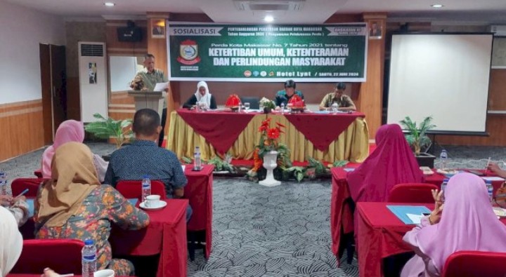 MAKASSAR,TIMESTIMUR — Anggota DPRD Kota Makassar, Azis Namu menggelar Sosialisasi Peraturan Daerah (Perda) nomor 7 tahun 2021 tentang Ketertiban Umum, Ketentraman dan Perlindungan Masyarakat di Hotel Lynt, Selasa (22/6/2024).