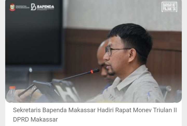 MAKASSAR,TIMESTIMUR — Sekretaris Badan Pendapatan Daerah (Bapenda) Kota Makassar menghadiri undangan Rapat Monitoring dan Evaluasi (Monev) Kegiatan SKPD Kota Makassar Triwulan II Tahun Anggaran 2024 yang digelar Komisi B bidang Ekonomi DPRD Kota Makassar.