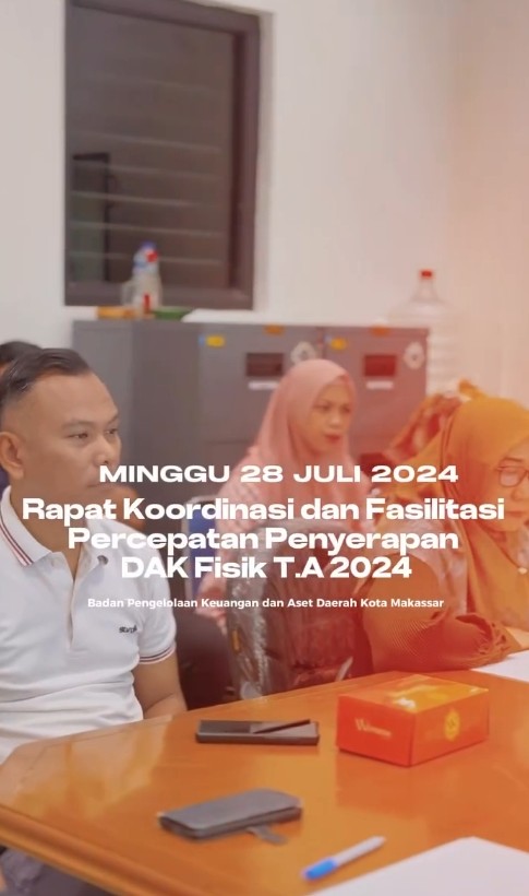 TIMESTIMUR, MAKASSAR — 28 Juli 2024 Rapat koordinasi dan fasilitasi percepatan penyerapan DAK Fisik T.A.2024 dipimpin Kepala BPKAD, Drs. Muhammad Dakhlan, M.Si.