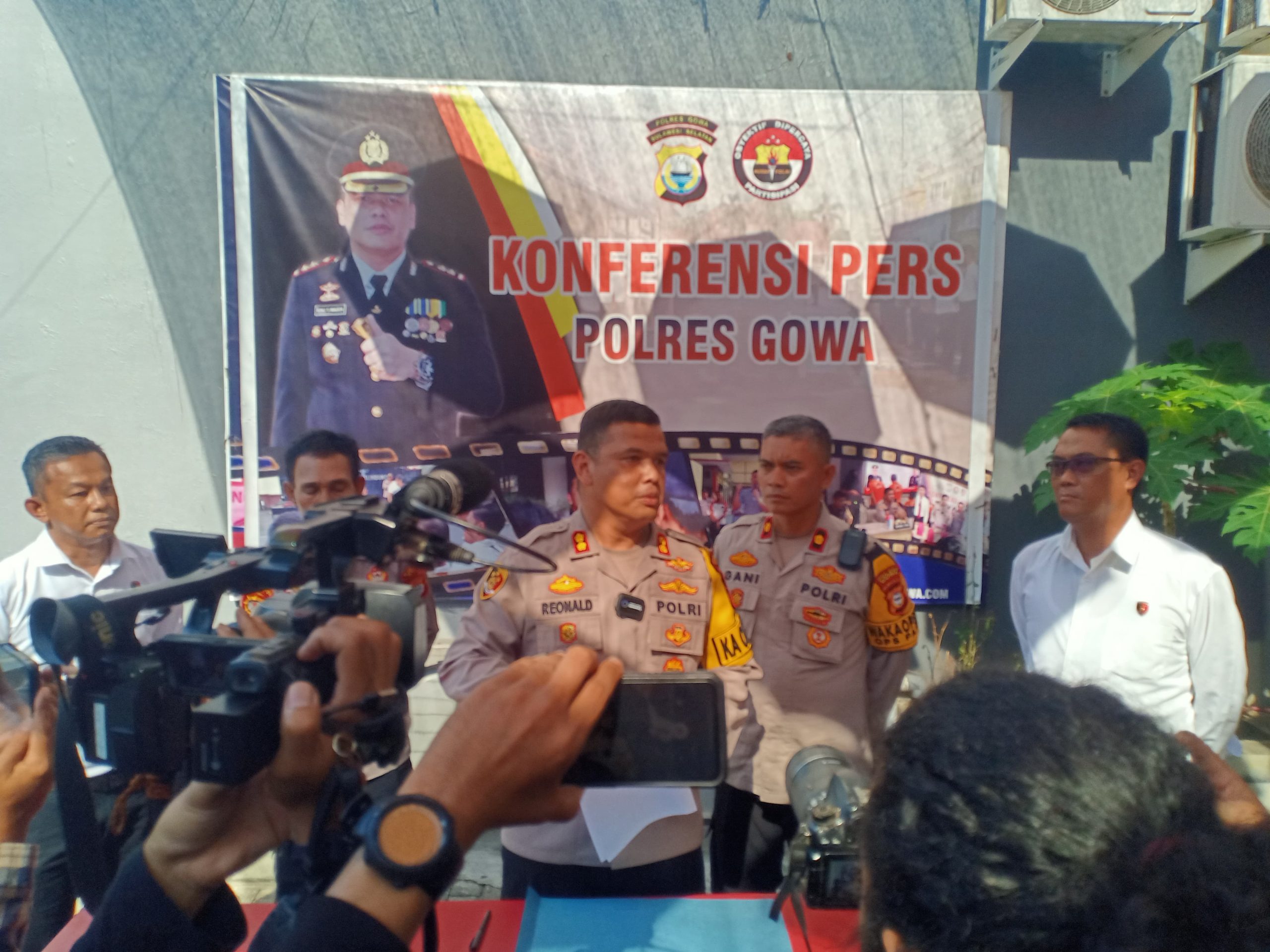 Konferensi pers yang diselenggarakan di Area Spot Payung Polres Gowa ini dipimpin langsung oleh Kapolres Gowa AKBP R.T.S Simanjuntak, S.H., S.I.K., M.M., M.I.K., didampingi oleh Wakapolres Gowa KOMPOL Gani, S.H., M.H., Kasi Humas IPTU Hamsir, KBO Satreskrim IPTU Kamaruddin dan IPDA Risman Tegar, S.H. serta dihadiri oleh awak media.