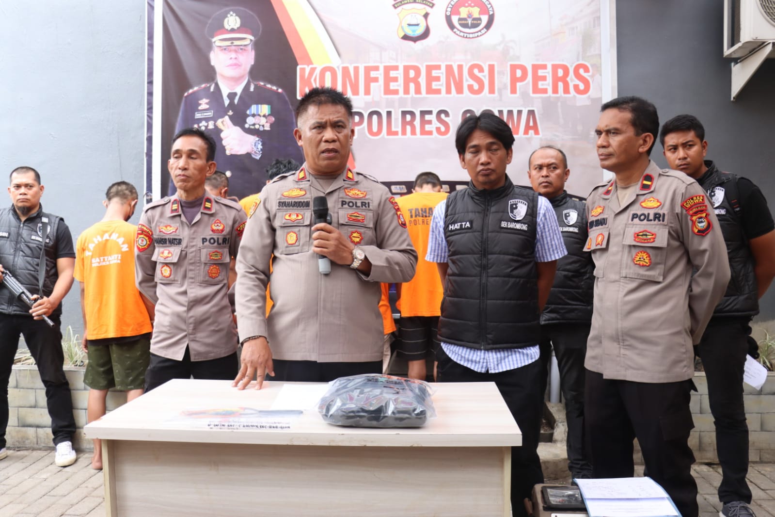 Penangkapan ke enam terduga pelaku tersebut diungkapkan langsung oleh Kapolsek Barombong AKP Saharuddin, S.H didampingi Kasi Humas Polres Gowa Iptu Hamsir Natsir, Kasubsi PIDM Ipda Udin Sibadu, S.H dan Unit Resmob Polsek Barombong saat menggelar Konferensi Pers di area Spot Payung Kantor Polres Gowa, Senin (19/8/2024) siang.