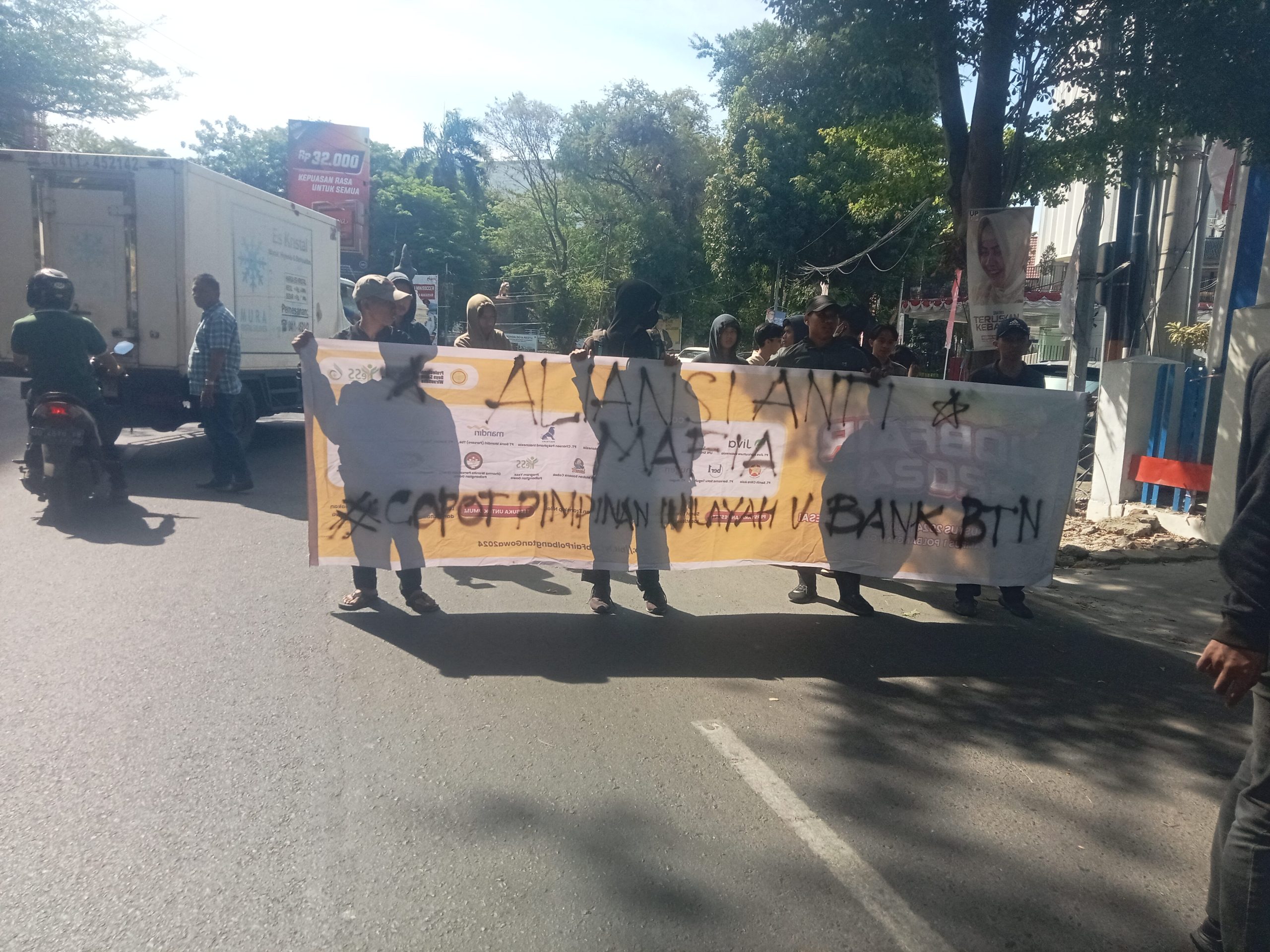Kami pula meminta ke APH agar memberantas Mafia KPR dalam tubuh Bank BTN, dalam orasi mahasiswa.
