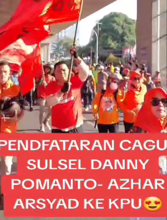 MAKASSAR, TIMESTIMUR — Ribuan pendukung pasangan calon Gubernur dan Wakil Gubernur Sulawesi Selatan, Danny Pomanto dan Azhar Arsyad (DP-AA), memadati Jalan Andi Pangeran Pettarani, Makassar, dalam rangka mengantar pasangan cagub tersebut ke Komisi Pemilihan Umum (KPU) Sulawesi Selatan. Pawai akbar ini menjadi wujud nyata dukungan masyarakat terhadap pasangan yang dikenal dengan slogan “Save Sulsel” (Selamatkan dan Tegakkan Demokrasi)