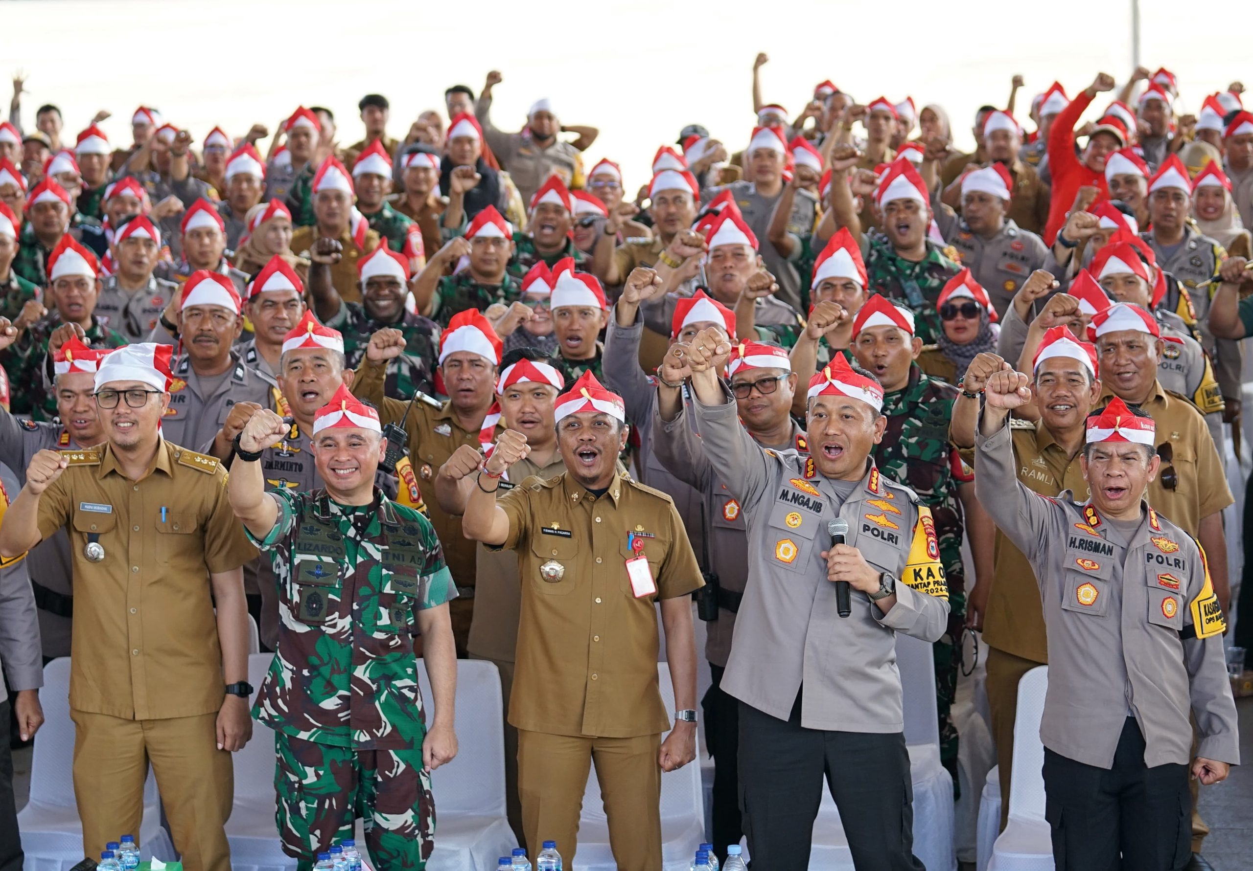 MAKASSAR, TIMESTIMUR — Pj Sekda Kota Makassar, Firman Hamid Pagarra bersama Kapolrestabes Kota Makassar, Kombes Mokhamad Ngajib dan Dandim 1408/Makassar, Letkol Inf Lizardo Gumay menyatakan komitmen bersama untuk mewujudkan pemilu damai 2024.