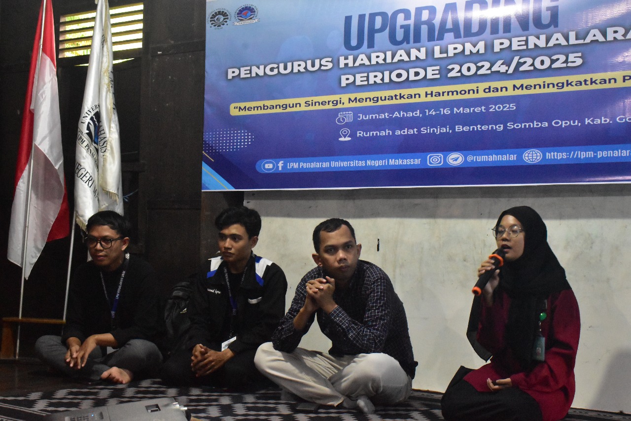 Kegiatan upgrading berlangsung pada tanggal 14–16 Maret 2025 di Benteng Somba Opu, Rumah Adat Sinjai. Lokasi ini dipilih tidak hanya karena nilai historisnya, tetapi juga karena lingkungan yang kondusif untuk kegiatan pembelajaran dan refleksi diri. Acara dibuka secara resmi oleh Pembina LPM Penalaran UNM, Yusri, S.Pd., M.A., yang dalam sambutannya menekankan pentingnya kegiatan ini dalam meningkatkan kualitas pengurus. Acara ini juga dihadiri oleh pengurus LPM Penalaran UNM periode 2024/2025 di Benteng Somba Opu, Rumah adat Sinjai yang turut berbagi pengalaman serta memberikan motivasi bagi kepengurusan baru.