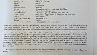 Kasus ini bermula dari kesepakatan kontrak satu unit mobil Toyota Hilux antara korban dan pihak terlapor, Rian Pratama, pada Sabtu malam, 21 Juni 2025 di wilayah Bahodopi. Dalam perjanjian tersebut, pembayaran direncanakan dilakukan satu hari setelah transaksi. Namun, hingga waktu yang disepakati, pembayaran belum terealisasi.