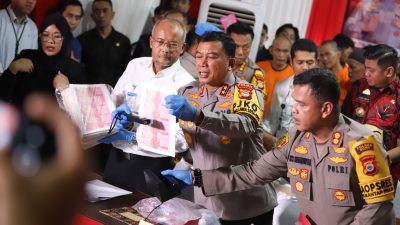 Kapolda Sulsel Pimpin Konferensi Pers Pengungkapan Kasus Pembuatan dan Peredaran Uang Palsu di Polres Gowa