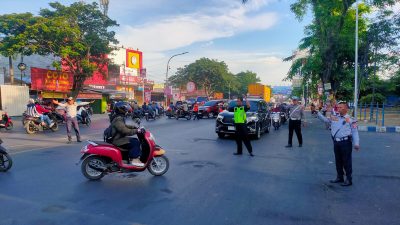 Personil dishub makassar bersama jajaran satlantas Polrestabes Makassar lakukan pengaturan lalin